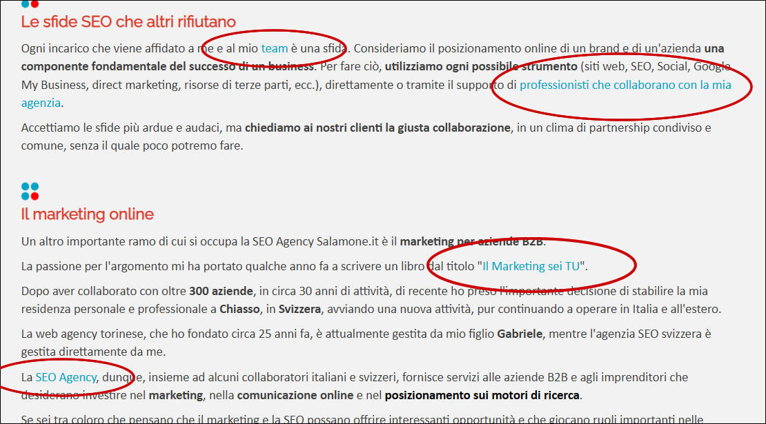 Nell'immagine sottostante puoi vedere i testi di ancoraggio evidenziati.